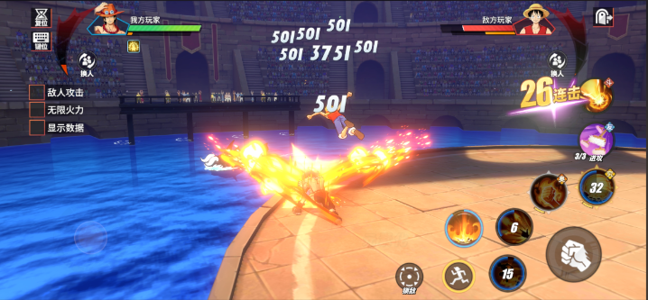 艾斯作为自然系烧烧果实能力者,在游戏中拥有极高的爆发和清场能力,特别适合喜欢高输出的玩家。他的技能组合非常流畅,普攻五段连击附带火焰特效,第三段开始伤害显著提升,第四段是多段攻击,第五段能击飞敌人,这让他在近身战中表现突出。一技能燃烧之果·冲刺不仅能突进击飞敌人,还附带元素化效果,可以规避伤害,追加的抓取技能还能将敌人砸向地面造成范围伤害,实用性非常高。二技能火枪是多段远程攻击,最后一击能造成高额伤害并击倒对手,适合用来压制敌人或打断对手技能。奥义技能更是全屏AOE伤害,配合究极奥义和激斗技,让他在PVE中成为清图效率顶尖的角色。