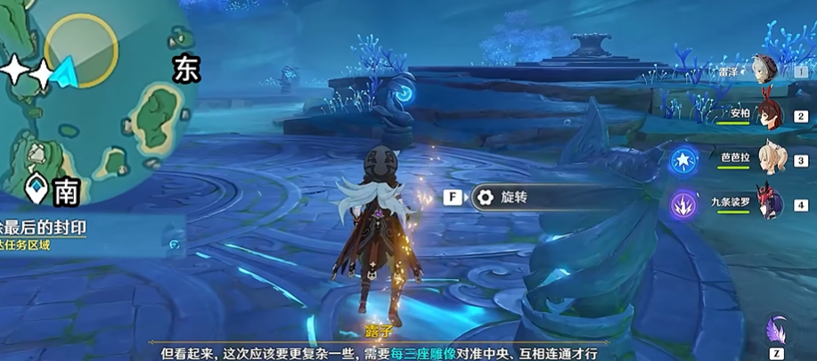 首先咱们要找到任务接取点,在珊瑚宫蒙云神社附近找到NPC露子对话,她会让你去解除三处封印。这时候别急着跑,先打开元素视野,能看到三个紫色雷球的位置,分别在岛的南、北、西三个方向。记住千万别用雷元素打这些球,用火、冰或者风元素攻击才能解开封印哦!