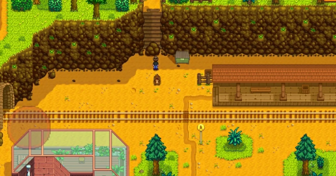 高效捡东西,建议提前在铁轨附近等着,尤其是夏季地震后的几天。火车速度很快,稍不注意就可能错过,所以听到声音后要立刻行动。掉落物会散落在轨道两侧,走过去按互动键就能捡起来。不过千万别站在火车前面,否则会被撞到扣血,严重的话甚至可能昏迷。冬天的时候火车车厢会装满礼物,但通常不掉落物品,只有冬季第25天例外,这时候还是能正常捡到资源的。