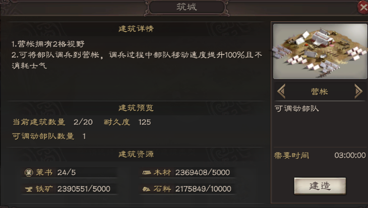主城的征兵处是关键,升到满级能减少80%的征兵时间。守备里的军机营也能缩短征兵时间,建议尽早升级。营帐也能用来征兵,但速度只有主城的五分之一,而且会额外消耗铜币,适合远距离作战时临时补兵。如果资源充足,可以同时在主城和营帐征兵,加快整体进度。