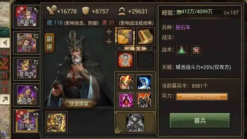 兵器等级需要达到一定的水准,例如有说法是至少8件珍宝加上两件红色品质的铠甲,这样才能有效提升整体容错率,让你有更多应对失败的缓冲空间。装备方面,要优先考虑给前排或核心输出武将配置高品质的防具,比如红甲、黄鞋等,其核心目的是减少被敌方破甲或一击即溃的概率,保障武将能在场上站得更久。对于追求爆发伤害的武将,也可以考虑魔神套、亡者套等能提升法术伤害或生存能力的套装,但具体选择需要根据你现有武将的特性和对手的阵型来灵活调整,没有一成不变的公式。