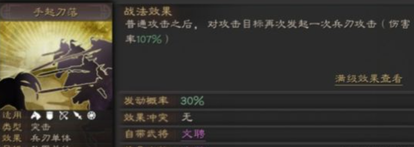 首推的就是手起刀落和暗藏玄机这两个,手起刀落的效果很直接,就是普攻之后再追加一次高额的兵刃伤害,简单粗暴地提升太史慈的爆发,打地练级的时候清场速度会快不少。暗藏玄机则稍微有点不同,它造成的也是兵刃伤害,但有概率让目标进入虚弱状态,虽然发动几率需要看脸,可一旦触发就能让对手下一回合的伤害大打折扣,在玩家对抗时有时候能有奇效。这两个战法获取门槛相对较低,是很多玩家前期过渡的经典选择。弯弓饮羽也是一个非常出色的A级选项,它不仅能打伤害,更重要的是能降低目标的统率属性并且让其陷入计穷,既削弱了对方的防御,又禁止其发动主动战法,攻防一体,特别实用。