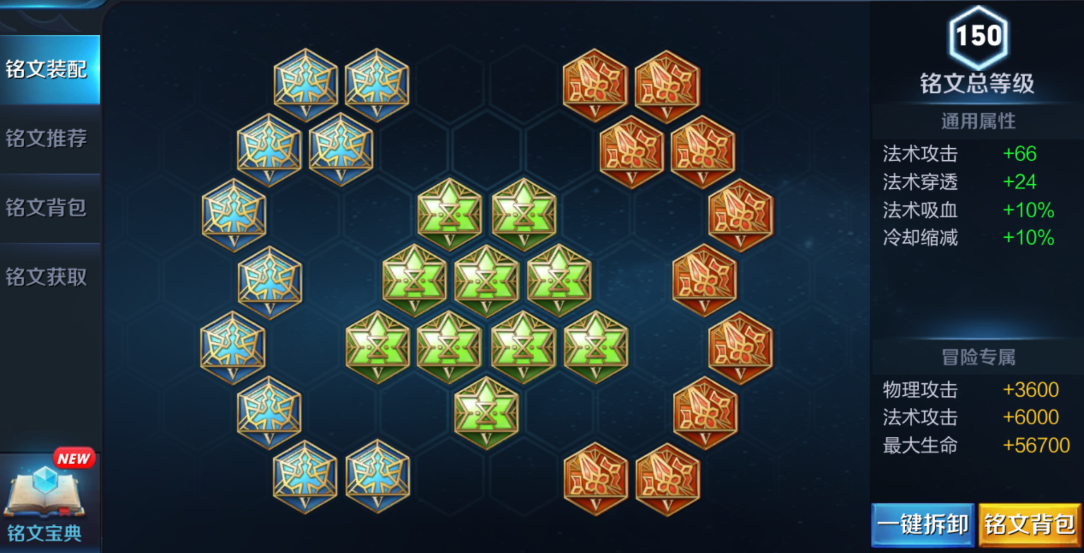 铭文搭配为梦魇、心眼和狩猎各十个,这套组合能提供法术攻击、穿透和移动速度加成,让英雄在前期对线和支援中更灵活,轮回铭文可替代狩猎,提供法术吸血增强续航,但需根据对局需求调整,铭文属性着重强化技能伤害和机动性,确保在清线和游走时占据优势,逐步根据实战经验优化细节,例如狩猎能增加攻速和移速,便于衔接普攻和技能,提升整体输出效率。