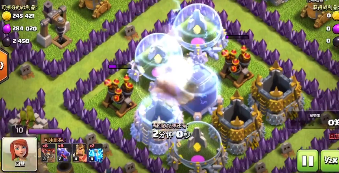 闪电法术的应用策略更加侧重于定点清除。由于高级大本营的防御建筑血量大为增加,单独使用闪电法术可能难以摧毁像天鹰火炮、投石炮这样的核心防御。发展出了将其与地震法术搭配使用的经典闪震套路。地震法术能按百分比降低范围内建筑的耐久度,与闪电法术的固定高额伤害形成完美互补,两者结合可以稳定地拔除那些位置刁钻、血厚防高的关键目标,极大地改变了高本阶段的进攻思路和阵型设计逻辑。