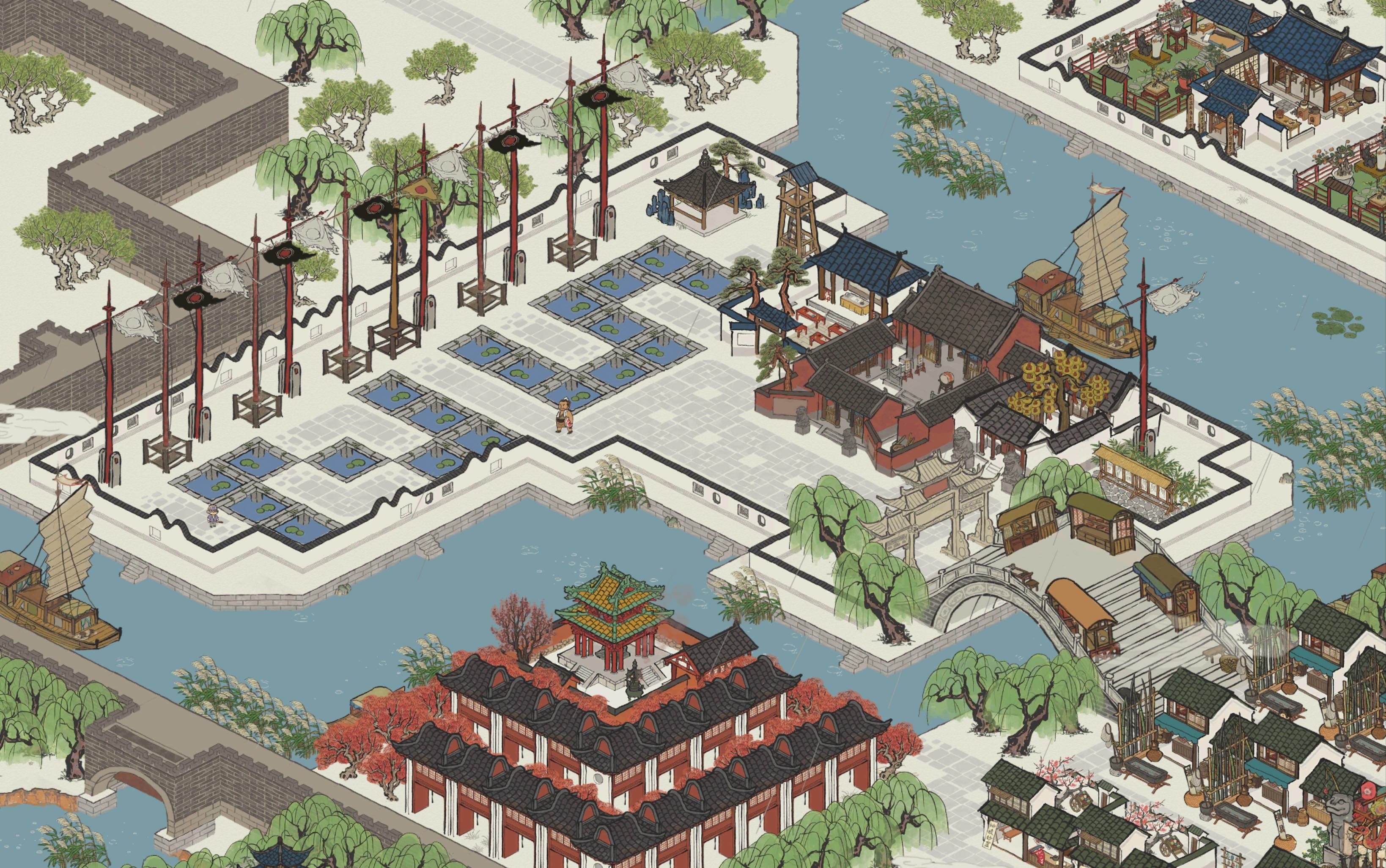 成功获取蓝图后,选址摆放有实用细节技巧,糖人摊属于小型市井小摊,占地面积小,优先布置在居民区、商业街、城门人流密集区域,既贴合江南市井氛围感,又不占用农业、工业生产核心地块。该建筑无居民工作需求、无耐久消耗、无需定期补给,摆放完成后自动生效,每日固定产出360枚铜钱,离线也能正常累计收益,长期放置可稳定补充日常小额开销,适配前期缺铜钱、后期完善城市景观的各类玩法阶段。