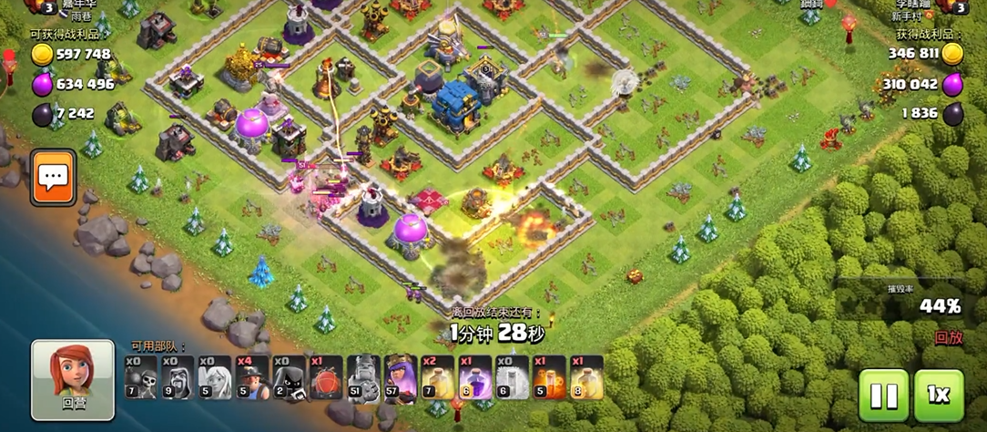 进攻时需重点保护天使的移动路径,优先清除敌方防空火箭、防空火炮等对空防御,防止天使在移动中被击落。经典的天女流派中,天使跟随弓箭女王推进,需通过清边开墙规划路线,让女王沿预定路径突进,天使同步移动治疗,配合狂暴法术提升效率,避免天使因路线混乱被防空火力集火。防守时天使会修复受损建筑,此时移动范围局限在受损建筑附近,但其修复速度远低于建筑受损速度,实战中不建议作为主力援兵。