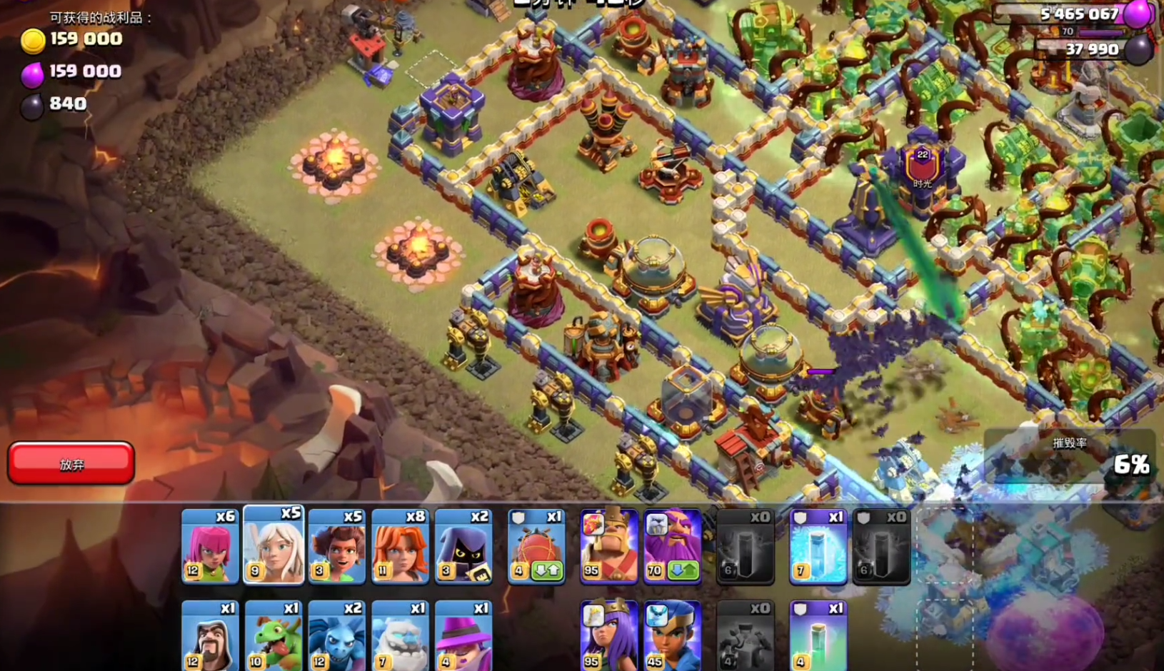 进攻选对流派是拿杯关键,低杯阶段优先挑选大本营外置、外围防御薄弱的阵型,用低成本兵种快速拿下一星保底,避免进攻失误大量掉杯;中端杯段可以选用矿猪流与狗球流,矿工能够绕开地面陷阱与墙体引导,野猪直切阵型核心防御,熔岩猎犬吸引防空火力搭配气球完成空中清场,稳定拿下两星甚至三星高奖励杯数。高杯传奇对局则适配雷龙一字划、超蓝女巫、天女飞艇主流体系,雷龙依靠连锁伤害快速清边破阵,飞艇精准空降爆掉敌方大本营,搭配冰冻、狂暴法术管控地狱塔、天鹰火炮等核心重防御,下兵先做好外围断边处理,防止大部队走偏分散输出,法术精准覆盖密集火力区域,最大化三星成功率,每一局稳定吃杯就能高效上分。