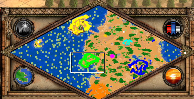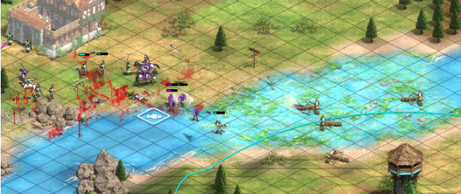 中期开始要重点破坏敌人的经济来源,用战舰摧毁敌方码头和渔场。黄金储备足够时可以训练投石车,配合步兵逐步拆毁城墙和箭塔。记得在前线建造城堡作为据点,既能提供火力支援又能训练特色单位。绿色势力相对较弱,可以优先解决他们获取更多资源。