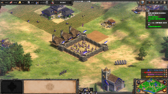 灭掉黄色后,咱们的村民可以安全进入黄色城市发展。开局给的100木头先造伐木场,之后按部就班种田挖矿。注意别主动招惹紫色和红色,他们的侦察兵可以打,但别深入他们的地盘。这段时间专心发育,攒够资源后,在基地左边的湖上造船坞,把部队运到对岸。也可以在对岸直接起城堡和马厩,为后续进攻做准备。