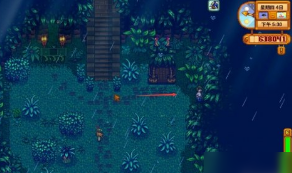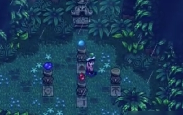整个解谜流程始于姜岛东部的丛林神社。与神社对话后,你会得知关于四只宝石鸟的提示。接下来就是等待雨天,姜岛的天气与鹈鹕镇相互独立,通常到达岛屿的第二天后才可能下雨。如果你想主动推进进程,可以使用降雨图腾来改变姜岛的天气。下雨时,你需要在全岛搜索宝石鸟,它们可能出现的位置包括南边的码头附近、东边农场的左侧椰林、西边雷欧小屋下方的区域,以及北边帐篷右下角的树林。找到并惊飞它们以获取宝石。